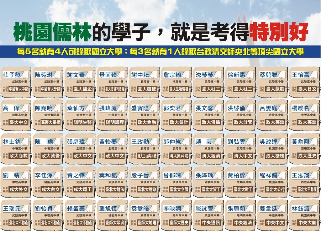 桃園儒林補習班學子104年大學申請、繁星、考試優異代表的奮發感言