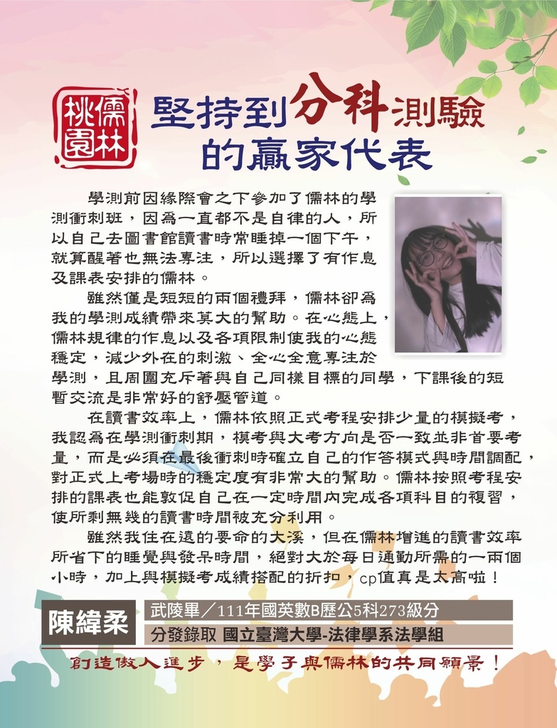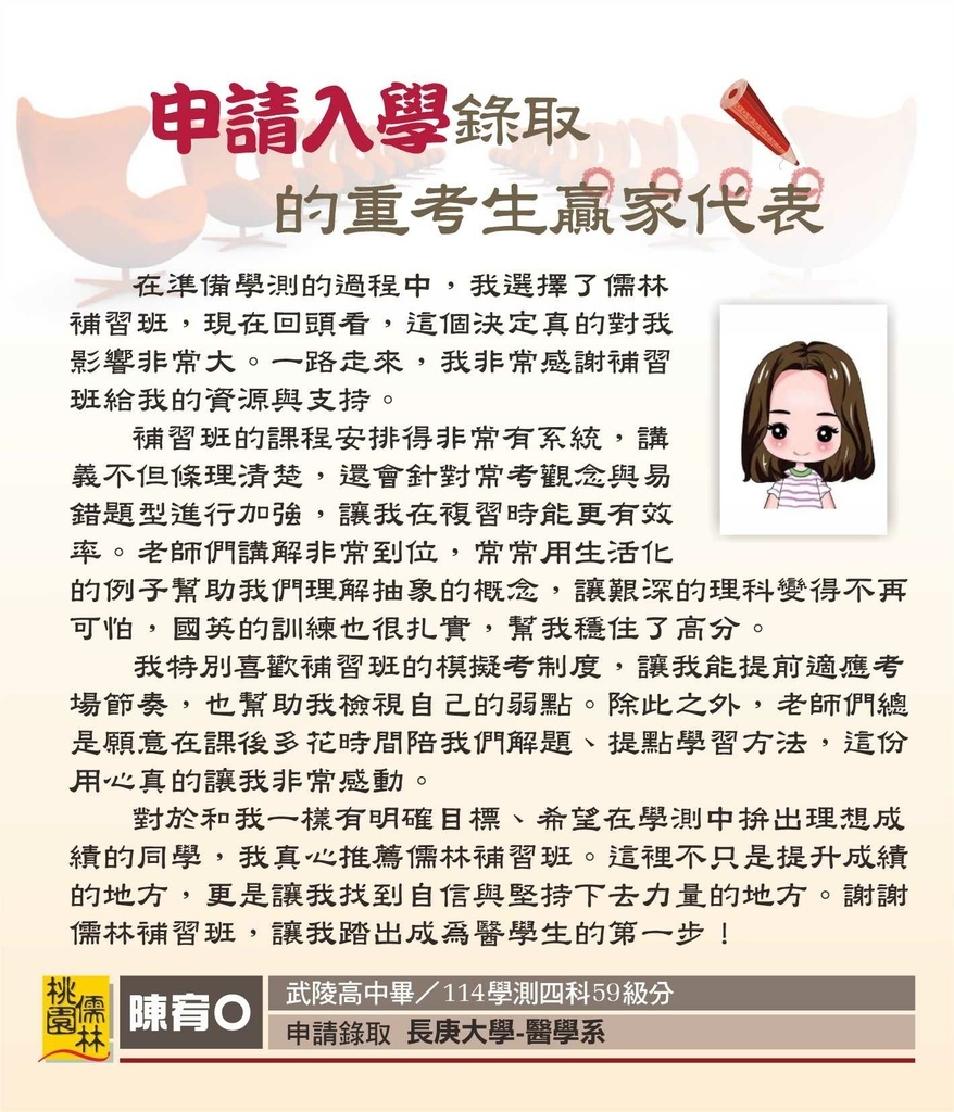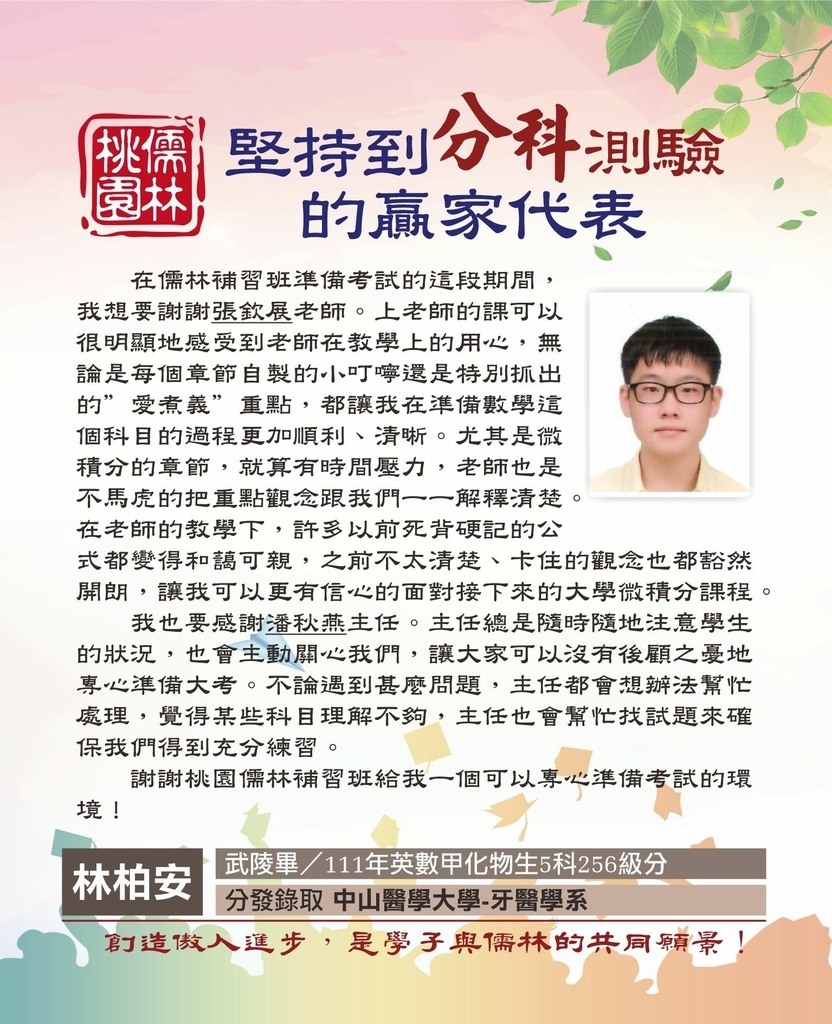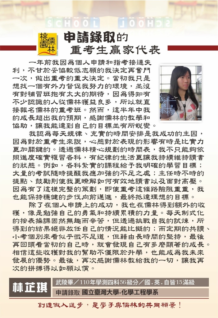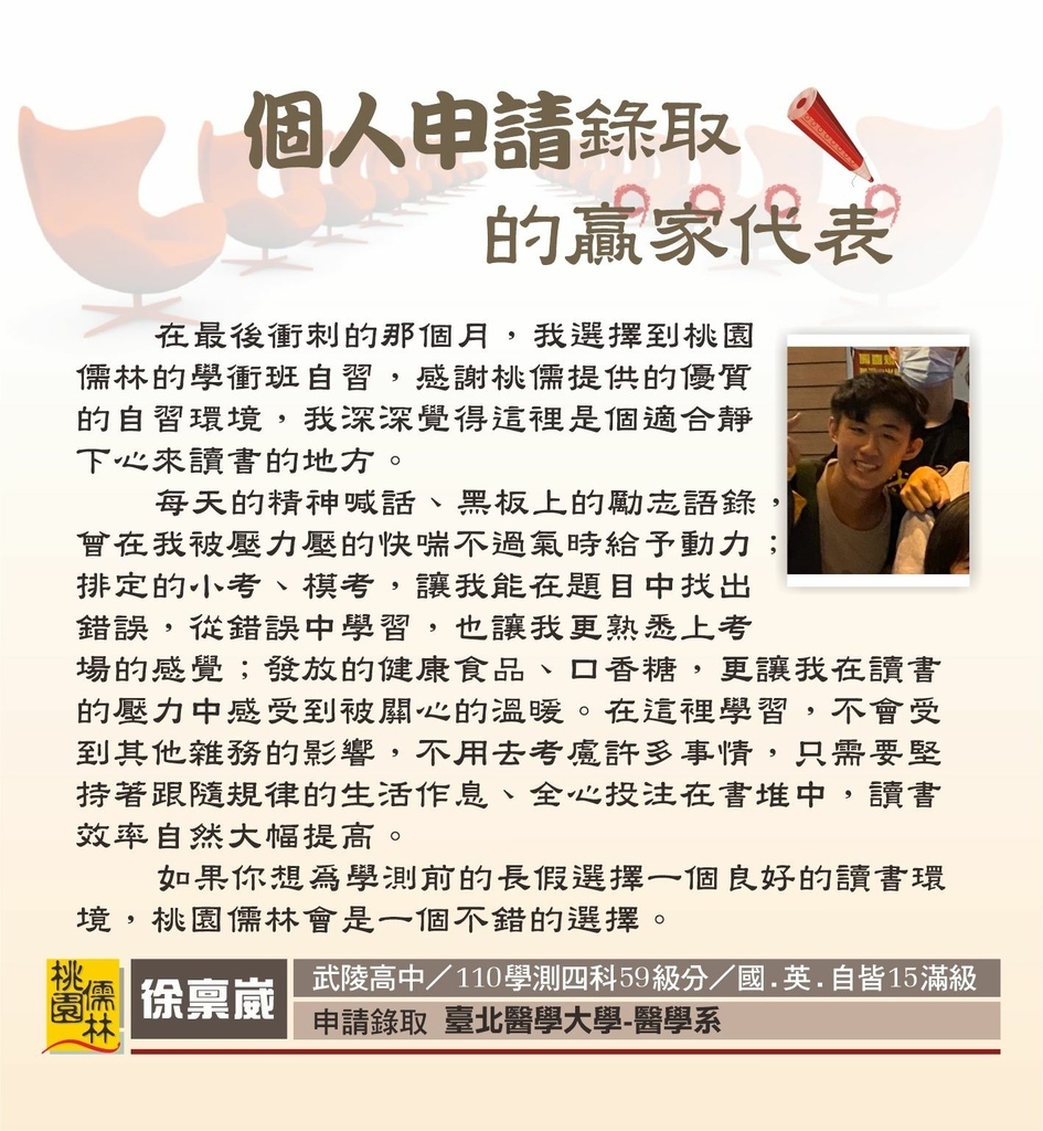 想參考桃園儒林補習班學子所真實分享的心路歷程,請點下面連結。
