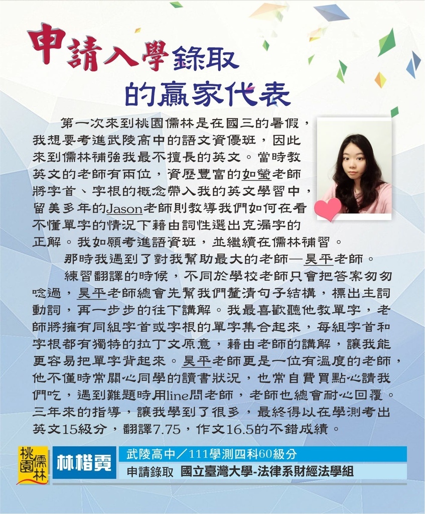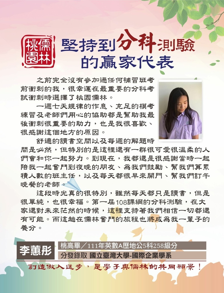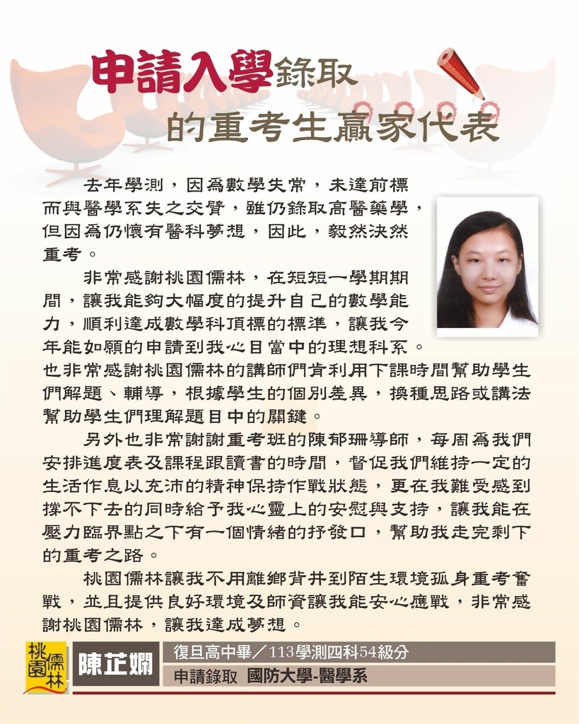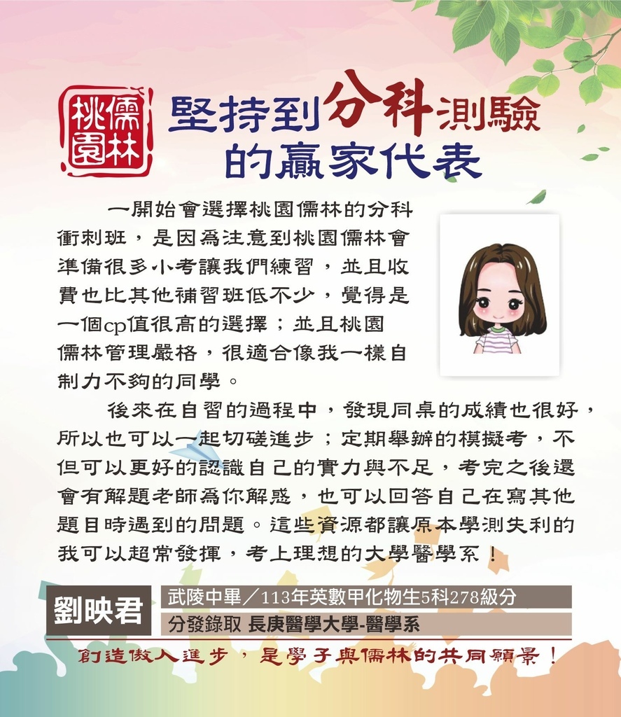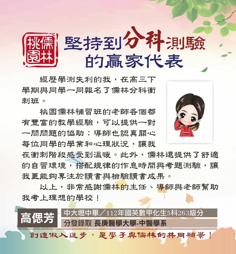 想參考桃園儒林補習班學子所真實分享的心路歷程,請點下面連結。