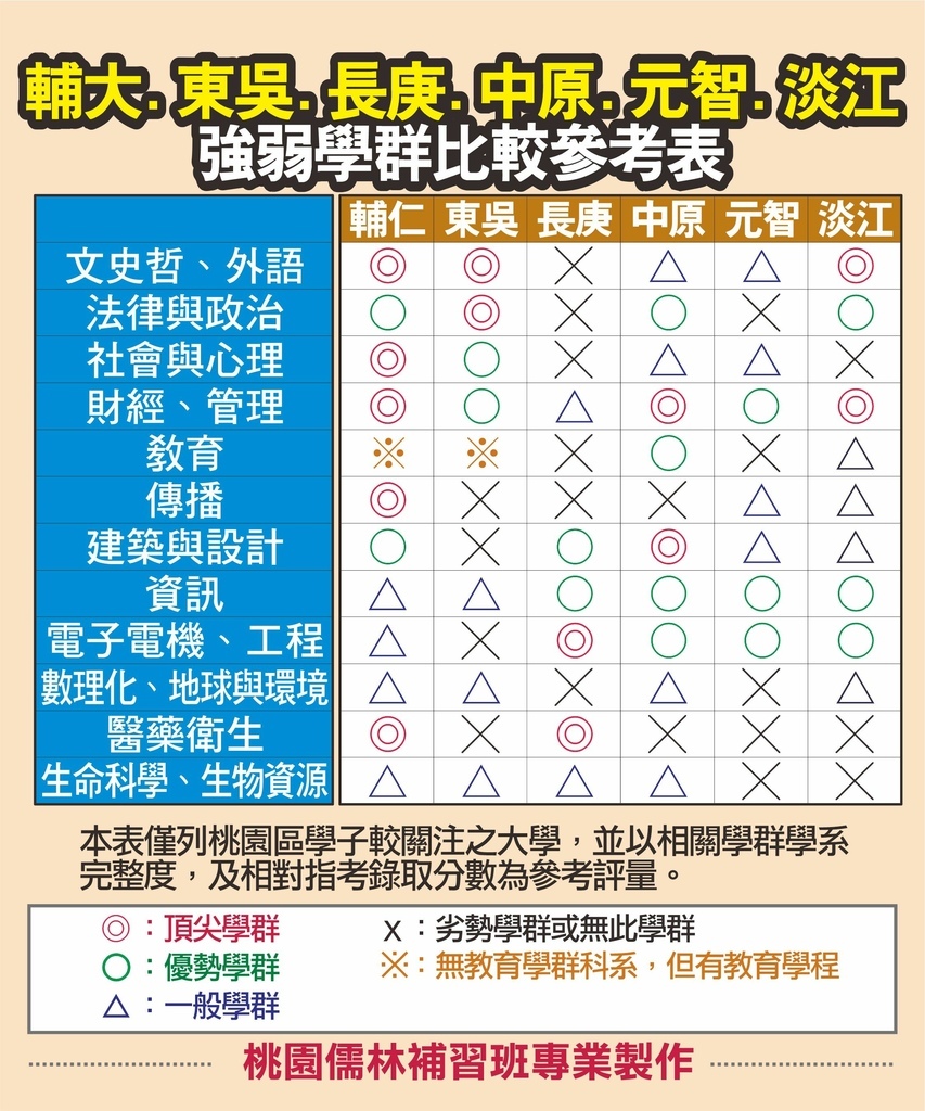 想了解大學分類組與分學群的相對競爭力,可參考桃園儒林補習班所整理的: