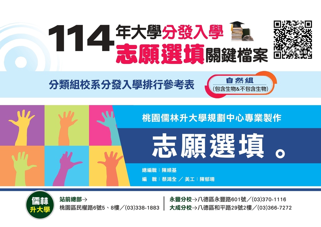 我們幫同學將大學系組,114年分發入學採計學測與分科測驗科目,及113年大學分發入學錄取人數、分數資訊整理起來,編輯成好用的大學分發入學分類組志願選填工具書,分成自然組跟社會組兩本,開放勾選表單免費下載;