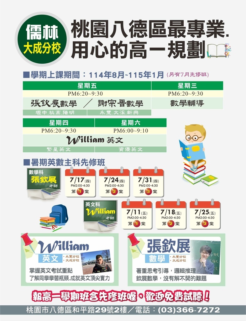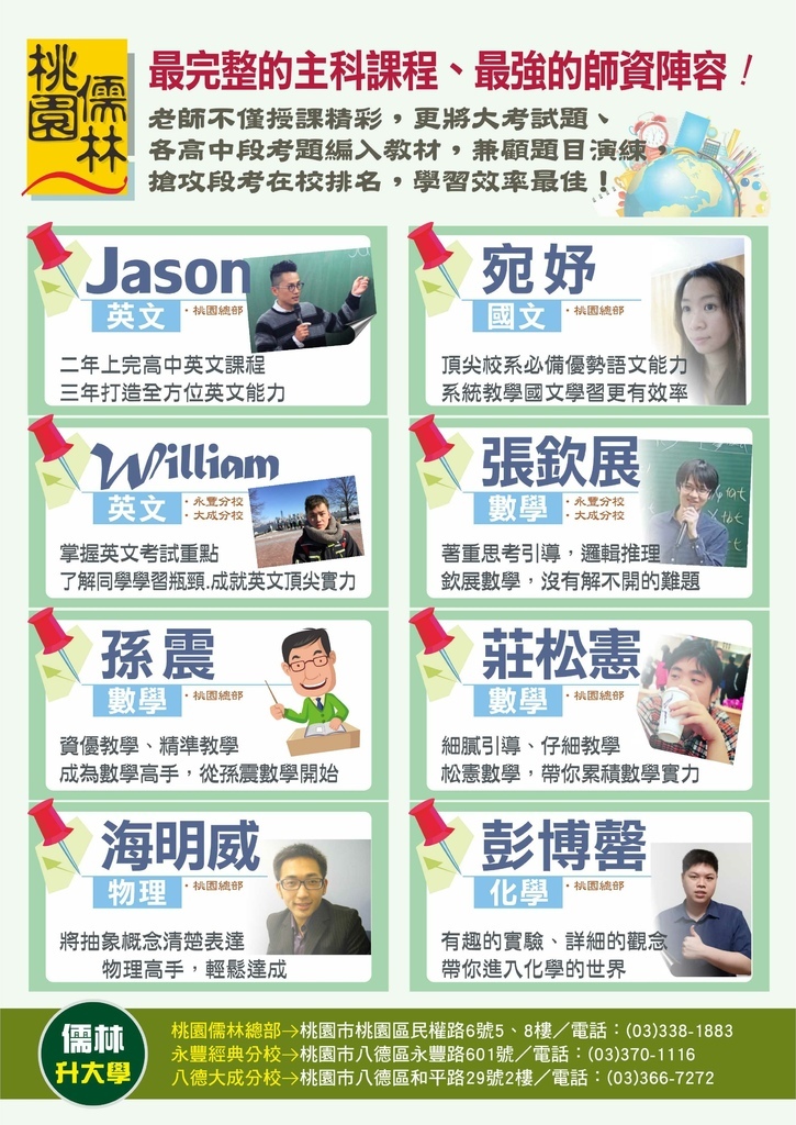 也歡迎親至桃園儒林補習班,班址:桃園市民權路6號5樓。